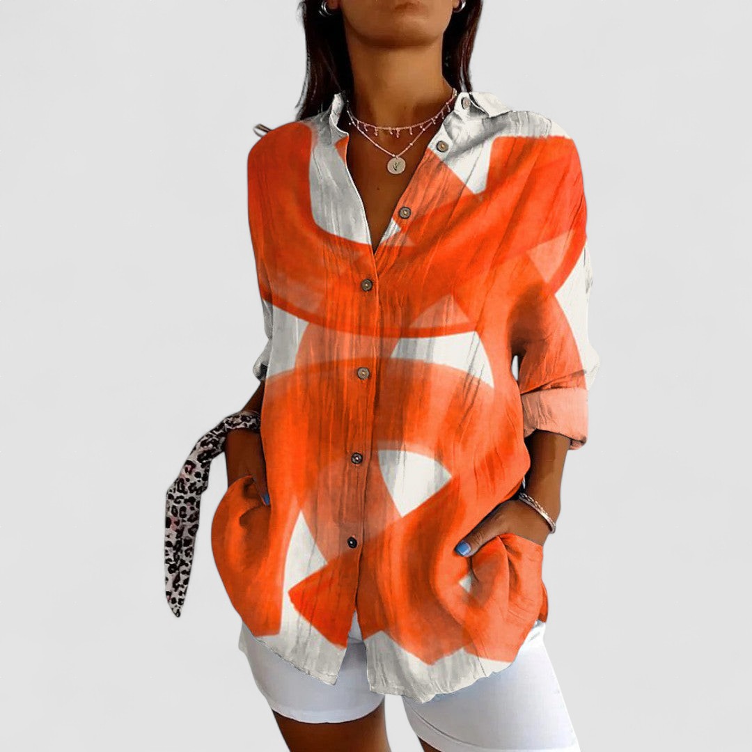 Adaugă o notă de farmec vintage garderobei tale cu Bluză Delia de la ØRLA Amsterdam! Această bluză este decorată cu un imprimeu vibrant care emană o senzație de prospețime și eleganță de vară. Materialul ușor și respirabil asigură confortul suprem, în timp ce închiderea cu nasturi și croiala lejeră conferă bluzei un aspect versatil. Perfectă pentru o zi casual sau o seară relaxantă.