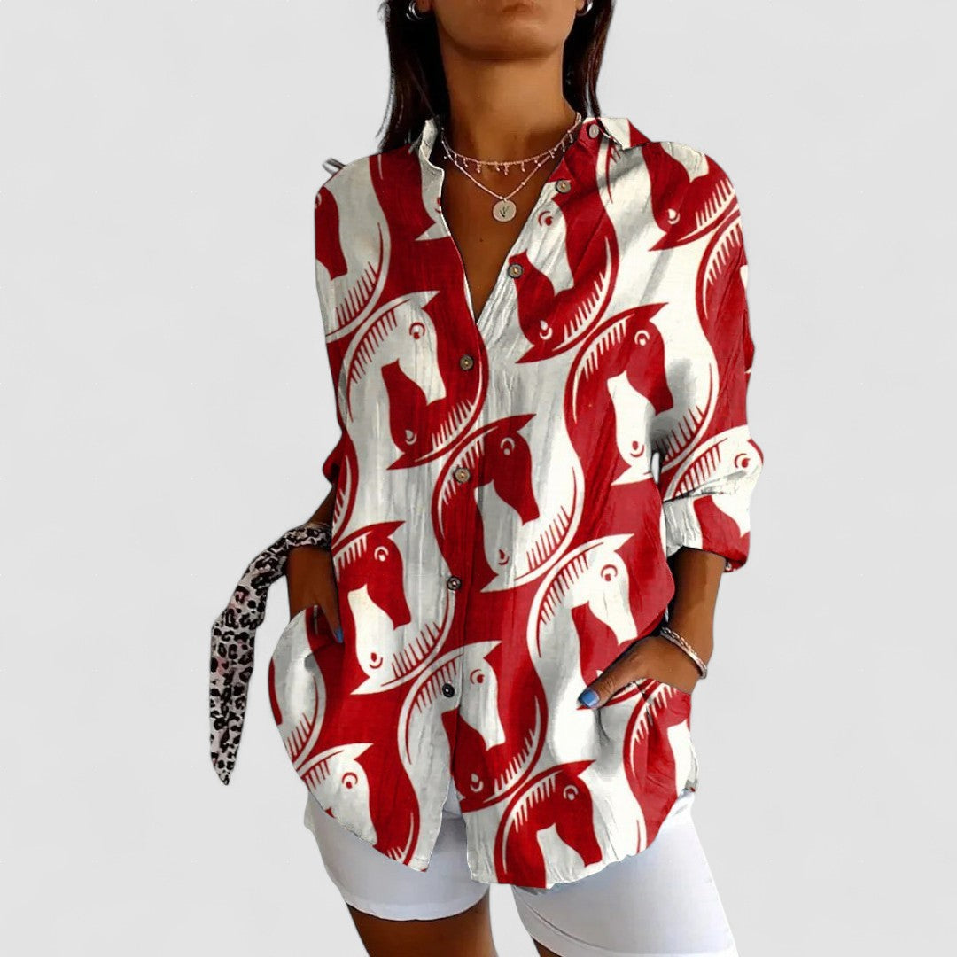 Adaugă o notă de farmec vintage garderobei tale cu Bluza Vera de la ØRLA Amsterdam! Această bluză este decorată cu un imprimeu vibrant care emană o senzație de prospețime și eleganță de vară. Materialul ușor și respirabil asigură un confort maxim, în timp ce închiderea cu nasturi și croiala lejeră oferă bluzei un aspect versatil. Perfectă pentru o zi casual în oraș sau o seară relaxantă.