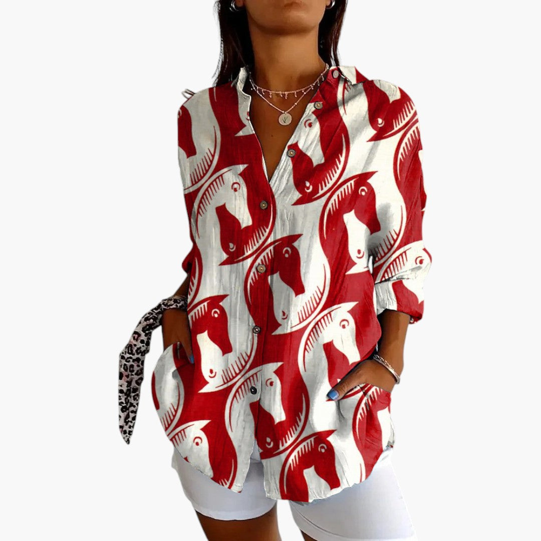 Imprimare florală timeless: Imprimarea elegantă cu flori în mai multe culori oferă bluzei un farmec vintage care rămâne mereu la modă.