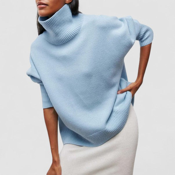Luxos de moale: gulerul Dolcevita asigură confort maxim și căldură, ideal pentru zilele reci.