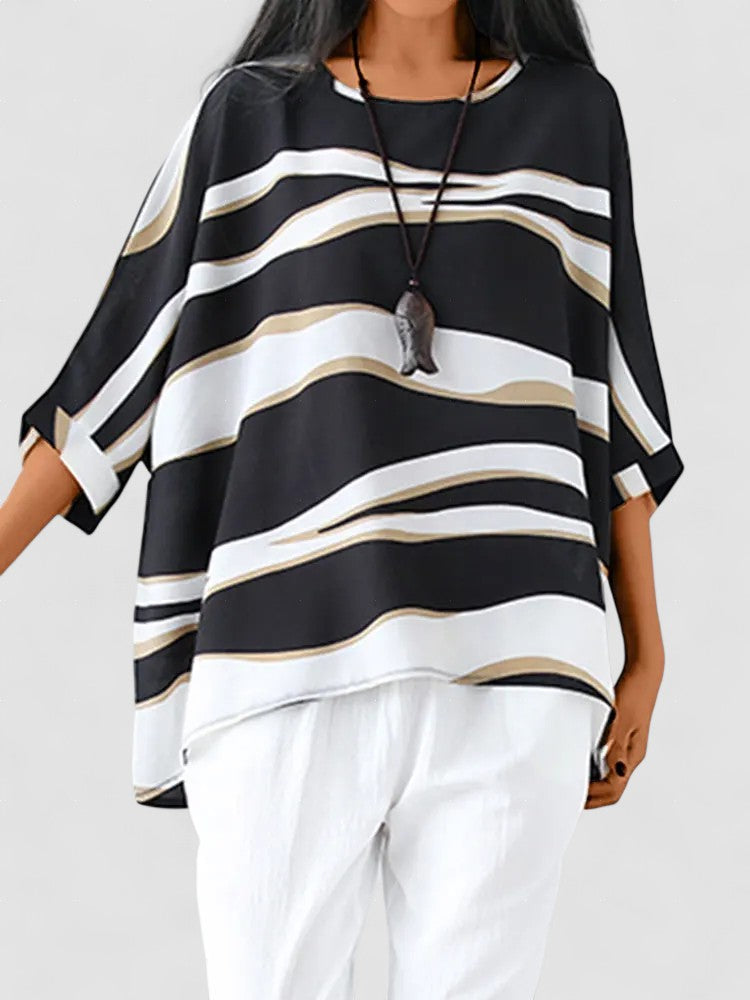 Bluza Paesyn cu guler O oferă un amestec perfect de eleganță minimalistă și versatilitate zilnică. Cu un decolteu rotund atemporal și o croială flatantă, această bluză trece fără efort de la orele de birou la activitățile de după program cu un stil desăvârșit.