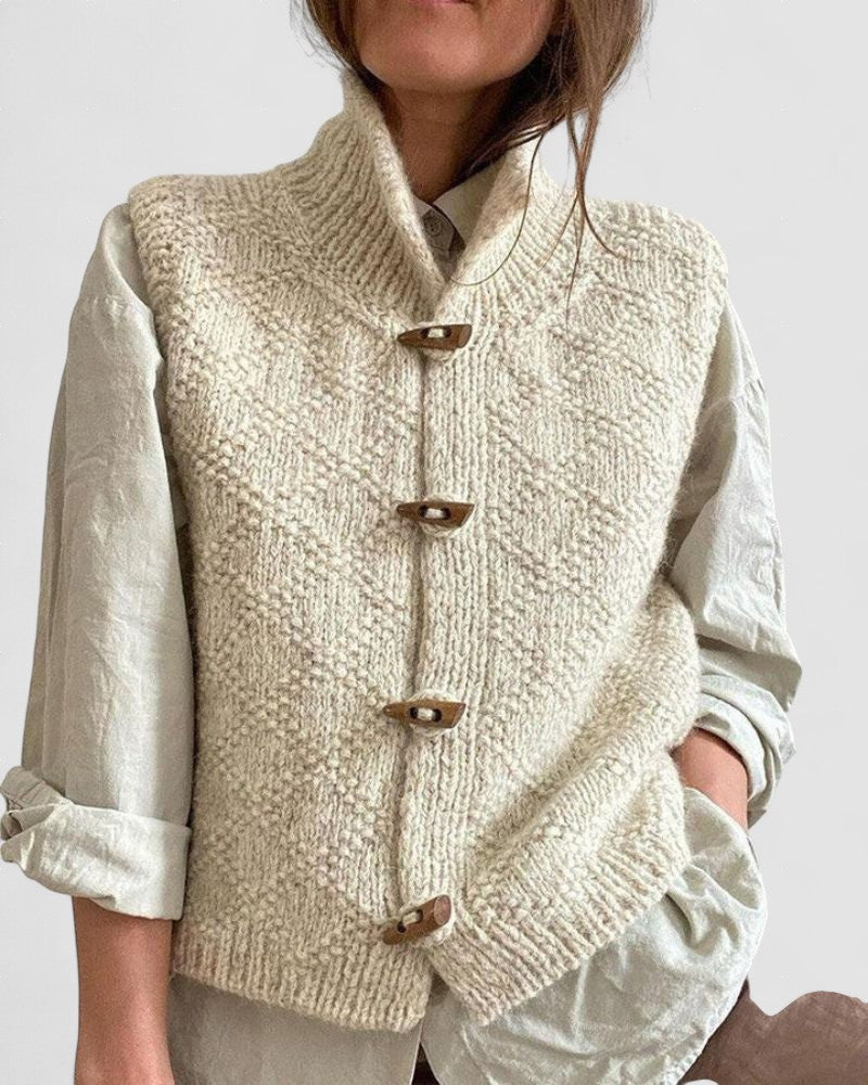 Împătește-te în stil și confort cu această vestă frumos concepută, perfectă pentru orice sezon. Fabricată dintr-un material moale și de înaltă calitate, oferă căldură fără a compromite moda. Drapajul său sofisticat și detaliile rafinate ale butoanelor creează un aspect elegant și totuși fără efort. Versatilă și ușor de asortat, această vestă este un element esențial pentru orice garderobă.