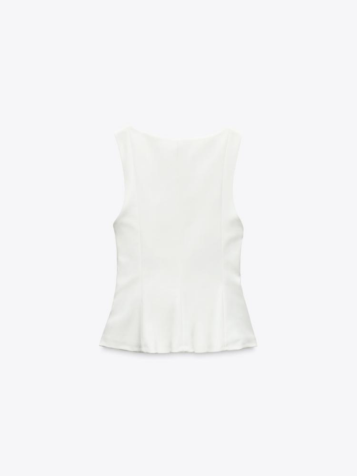 Top fără mâneci cu peplum și guler pătrat, slim-fit