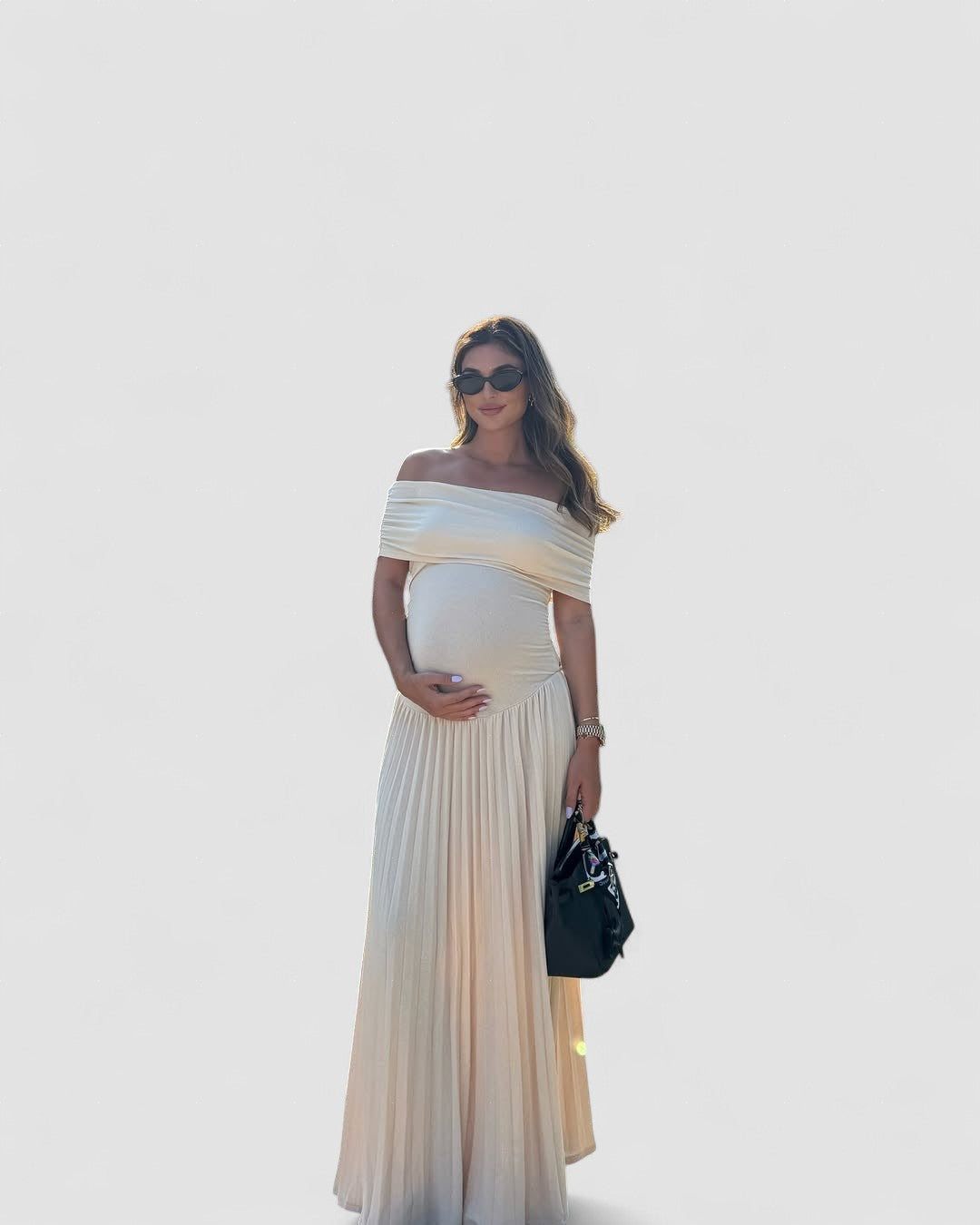 Amara – Rochie Maxi de Maternitate Elegantă cu Falduri