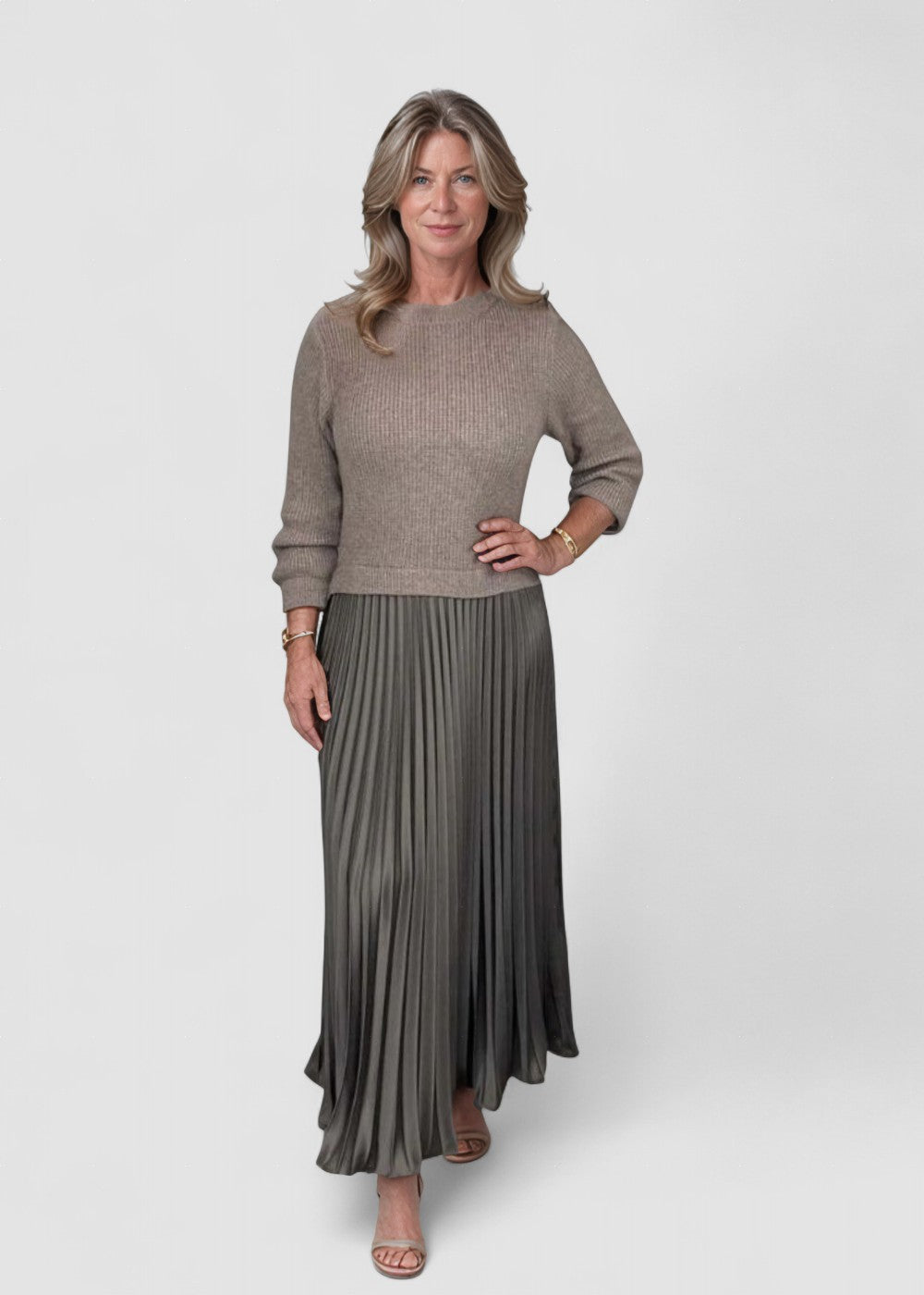 Clara – Set de Damă Elegant cu Pulover și Fustă Plisată Midi
