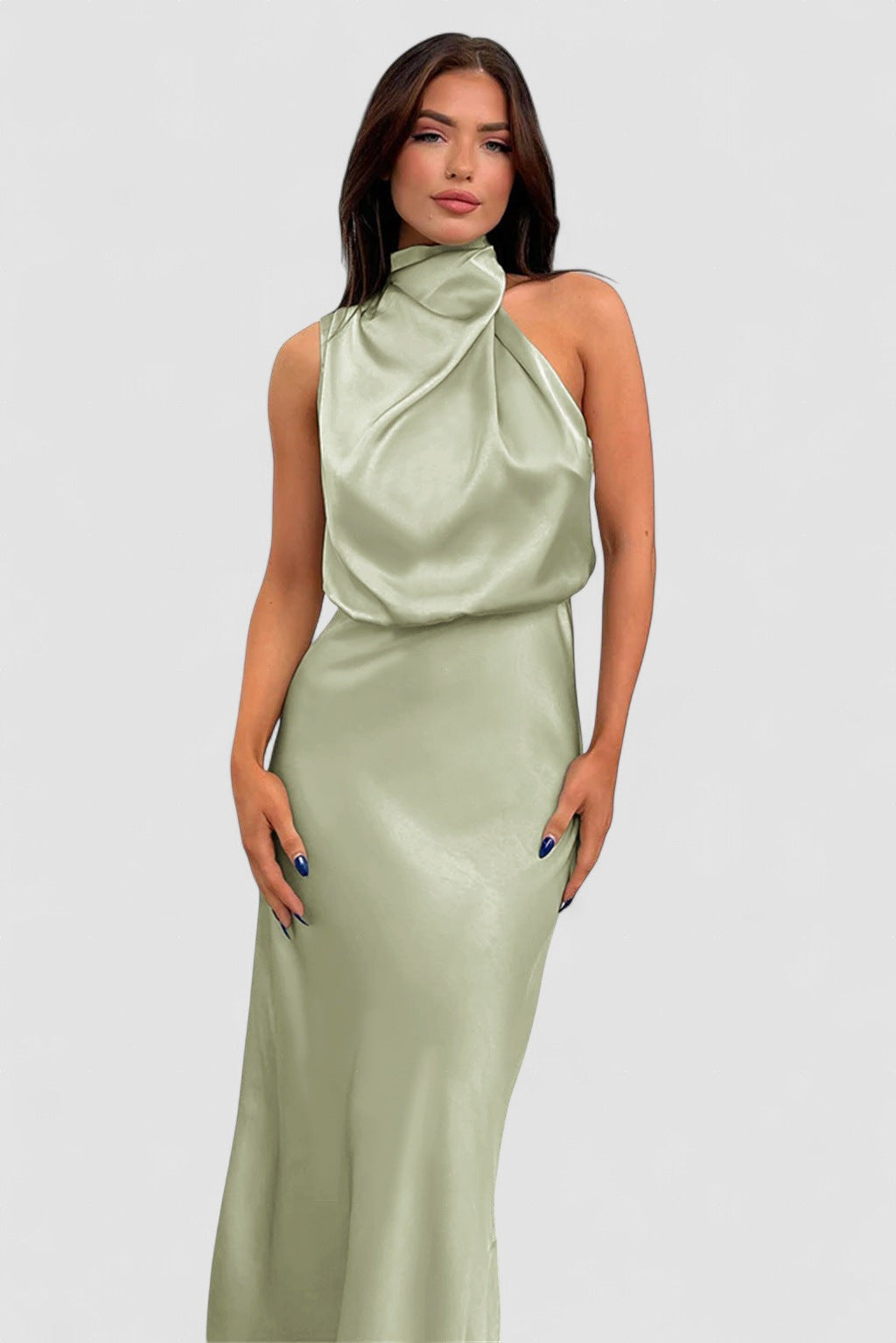Descoperă Ida™ – rochia care combină luxul și confortul într-un design frumos. Cu un decolteu halter elegant și un aspect fluid din satin, această rochie creează o siluetă sublimă, care te face să strălucești în orice situație. Ideală pentru nunți, gale sau ieșiri speciale.