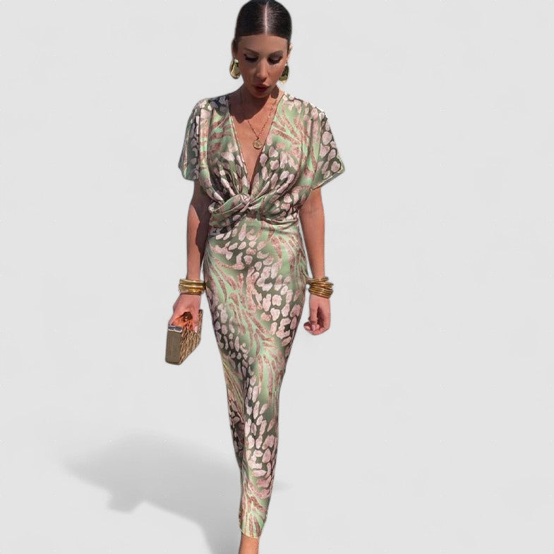 Kelsey - Rochie lungă cu decolteu în V și detaliu răsucit