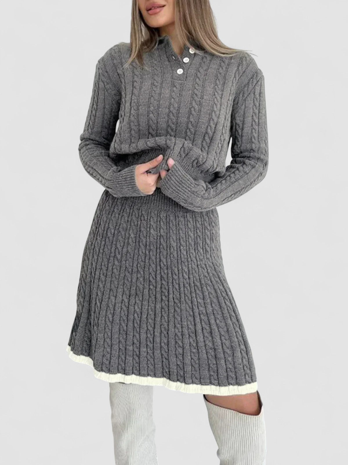 Set fustă cu rever și tricotat în cablu